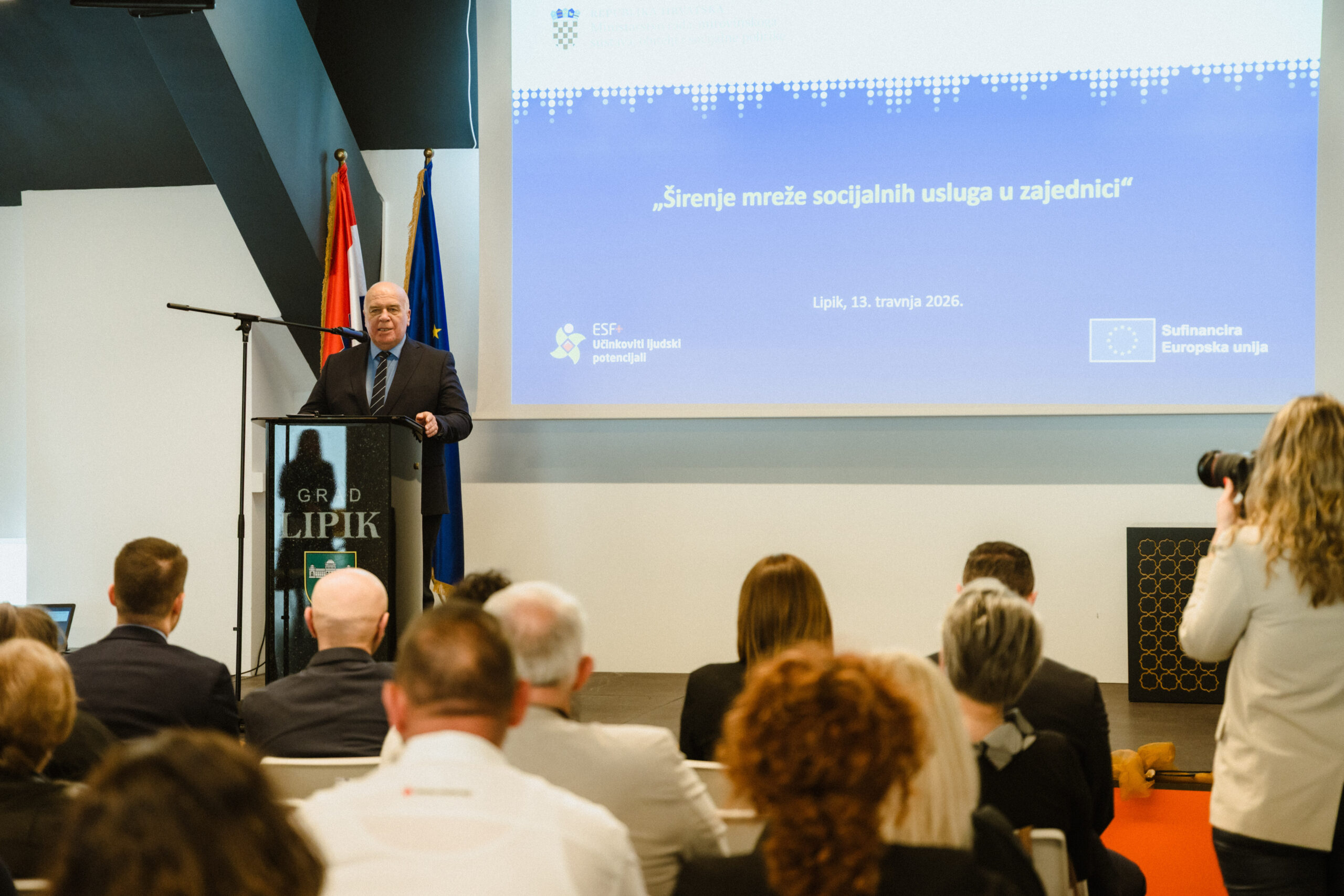 U organizaciji Ministarstva rada, mirovinskoga sustava, obitelji i socijalne politike, 13. travnja 2026. godine, u Interpretacijskom centru Termalne baštine grada Lipika – Vila dobre vode, u Lipiku, održano je svečano potpisivanje ugovora o dodjeli bespovratnih sredstava u okviru poziva „Širenje mreže socijalnih usluga u zajednici“, iz Programa Učinkoviti ljudski potencijali 2021.–2027. (ESF+).